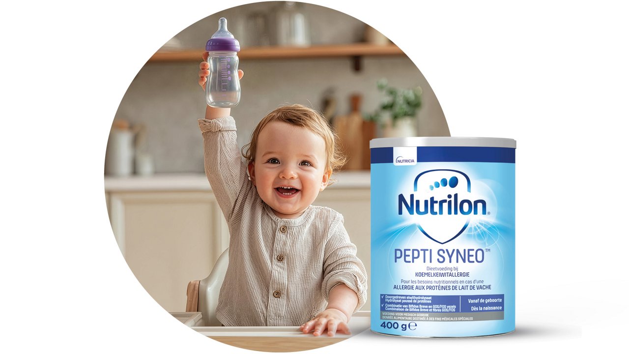 Nutrilon Pepti Syneo® est très apprécié par les parents pour son goût, au sein de la catégorie des aliments pour personnes allergiques. Les parents indiquent que le goût peut faire la différence pour un enfant souffrant d’allergie au lait de vache. Ceci contribue à un biberon mieux terminé et un bébé plus satisfait.*